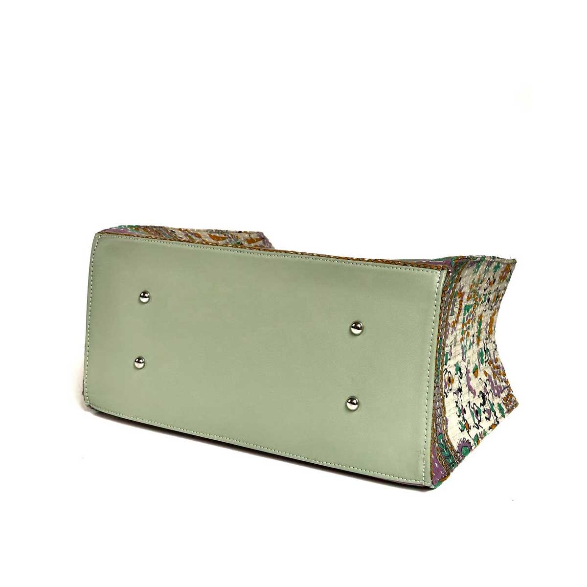 توت بگ با پارچه کوک دوزی در هر پنل که برش می خوره یک طرح و رنگ است به همین دلیل این کیف ها تک نسخه ای تولید می شود