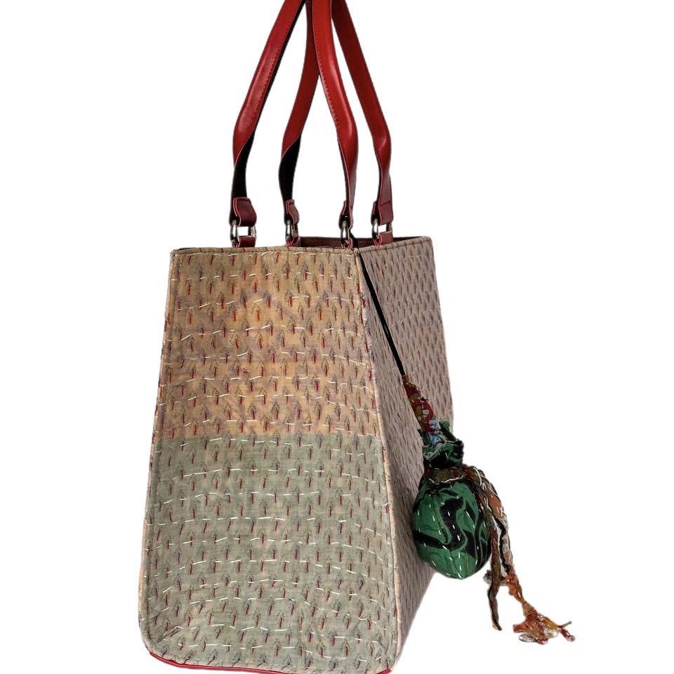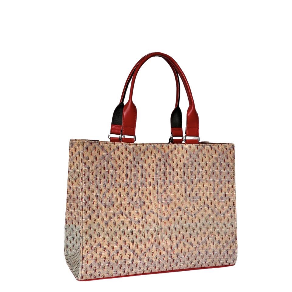 توت بگ با پارچه کوک دوزی که برای دسته ازچرم مصنوعی ترک استفاده شده وباکیبل دستدوز تزیین شده است و در کیف به وسیله دکمه بسته می شود وهمچنین داخل کیف یک جیب دارد.