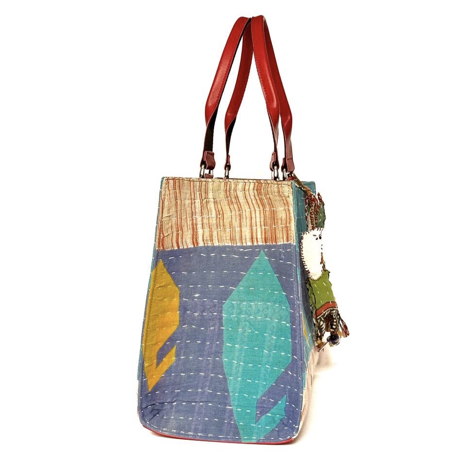 توت بگ با پارچه کوک دوزی که برای دسته ازچرم مصنوعی ترک استفاده شده وباکیبل دستدوز تزیین شده است و در کیف به وسیله دکمه بسته می شود وهمچنین داخل کیف یک جیب دارد.
