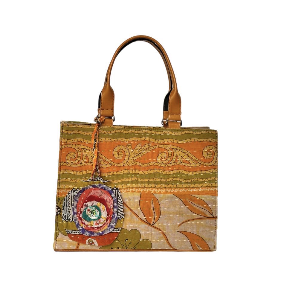 توت بگ با پارچه کوک دوزی که برای دسته ازچرم مصنوعی ترک استفاده شده وباکیبل دستدوز تزیین شده است و در کیف به وسیله دکمه بسته می شود وهمچنین داخل کیف یک جیب دارد.