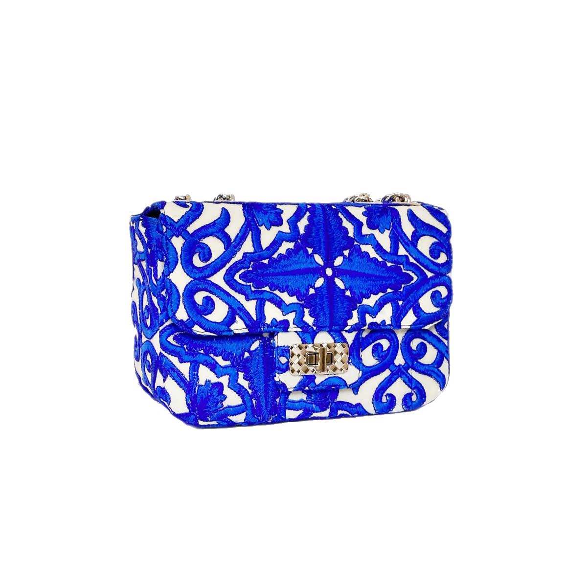 این کیف فلاپ خاص، با بدنه‌ای از پارچه‌های سوزن دوزی، جلوه‌ای اصیل و هنری دارد.